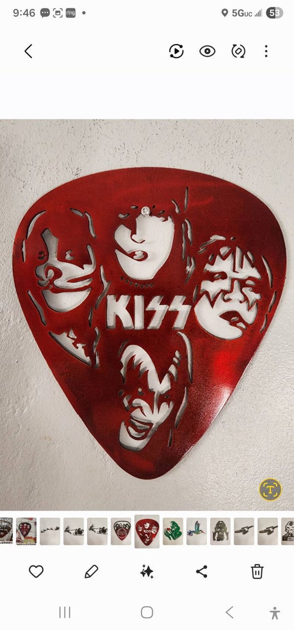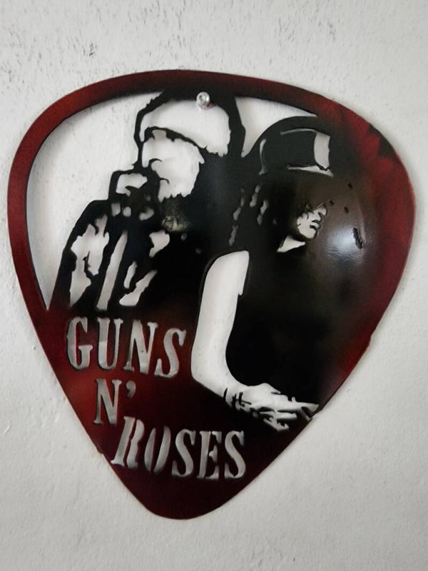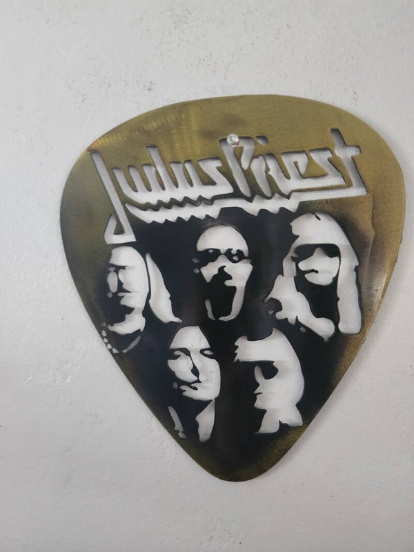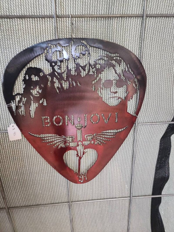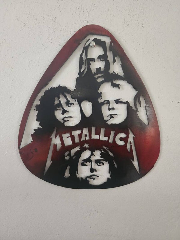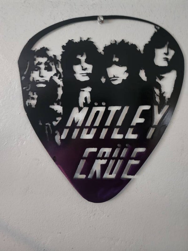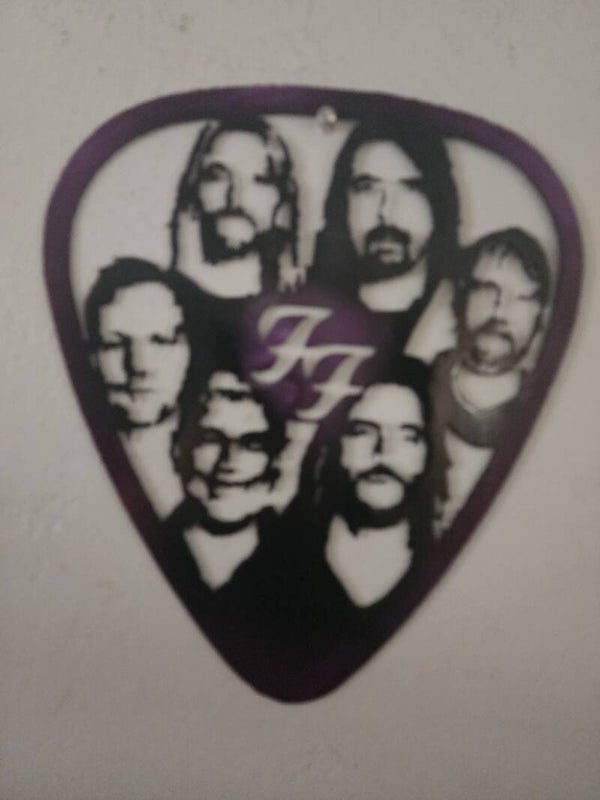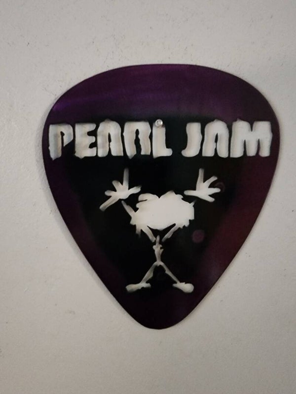 Show off your love for music with our bold, handcrafted metal guitar pick wall art featuring your favorite band! We specialize in rock and classic rock designs, but we can customize a pick for ANY band, singer, or even your own band logo—making it the perfect gift for music lovers and musicians alike.